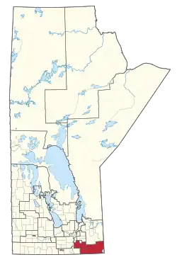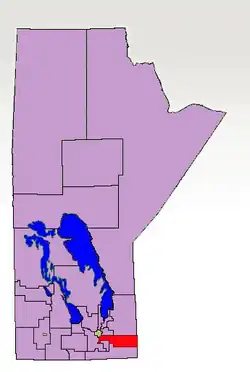 Located in the southeastern region of the province, it is bordered within Manitoba by the neighbouring electoral divisions of Lac du Bonnet, Dawson Trail, Steinbach, Springfield-Ritchot, Midland, and Borderland to the west and north;[2][3] by the province of Ontario to the east; and by the U.S. state of Minnesota to most of the south.[1]