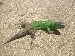 Lacerta strigata, the Caucasus emerald lizard, five-streaked lizard, or Caspian green lizard, is a species of lizard in the family Lacertidae. It is found in Georgia, Armenia, Azerbaijan, Turkmenistan, Turkey, and Iran.[1][2]