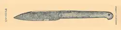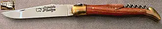 The Laguiole knife (French pronunciation: [laɡjɔl], locally [lajɔl]) is a traditional Occitan pocketknife originally produced in the "knife city" of Thiers, source of 70% of France's cutting tool production, as well as the small village of Laguiole, both located in the Massif Central region of France. Laguiole in this instance does not refer to any knife brand in France, where use of the name is not legally restricted, but to a generic type of traditional slipjoint knife of a sort associated with this French region, now made worldwide.[1][2][3]