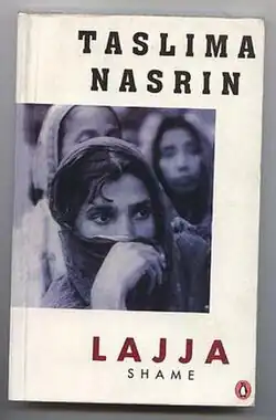 Lajja (Bengali: লজ্জা Lôjja) (Shame) is a novel in Bengali by Taslima Nasrin, a writer of Bangladesh. The word lajja/lôjja means "shame" in Bengali and many other Indo-Aryan languages. The book was written about the violence, rape, looting and killings of Bengali Hindus that took place in December 1992 after the destruction of Babri Masjid took place in India. The book was first published in 1993 in Bengali and was subsequently banned in Bangladesh.[1][2] It nonetheless sold 50,000 copies in the six months after its publication,[3] though Taslima fled her native Bangladesh after receiving death threats from Islamic groups.[4]