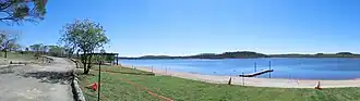 Lake Belmore was built in 1995 to supply town water to Croydon in Queensland, Australia.[1] The waters behind the dam are stocked with barramundi and redclaw crayfish.[2]