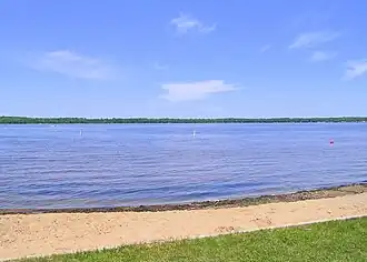 Over 270 homes and four resorts are located on the shorelines of Lake Noquebay. Since 1975 the Lake Noquebay Rehabilitation District manages the plants, pollution run-off, and water quality of the lake. Their responsibilities also include the operations and maintenance of the dam. Their efforts have greatly reduced the phosphorus runoff from nearby farmlands.[1] Historical data show that for several decades phosphorus levels have been increasing with an unknown cause. Phosphorus levels in 2018 were 25–30 μg/L (1.1×10−5–1.4×10−5 gr/U.S. fl oz). The aquatic ecosystems of northeast Wisconsin, phosphorus water levels average about 19 micrograms per liter. A nutrient study had been planned for 2018 by the Lake Rehabilitation District to measure the amounts of phosphorus entering the aquatic system and possibly locate the source. The study could take three years to complete and will be partly funded by Wisconsin DNR Lake Management Planning program grant.[24] In June 2020, PFAS-contaminated biosolids were tested in water wells of nearby agricultural fields, which seem to be approaching Lake Noquebay. Four water wells in the area had samples reflecting detection levels above 20 parts per trillion of PFOA and/or PFOS. Two additional water wells had PFAS positive detections that show levels between reporting limit and 20 parts per trillion. Although, these were detected nearby, actual testing of Lake Noquebay was not determined at that time.[25]