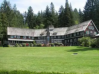 Its replacement was funded by lumberman Ralph Emerson of Hoquiam, who bought out the Seamans. The first stage was a plain 1+12-story structure which still stands as the annex, restored in 2007. It became so popular that expansion was needed, and a new, more elaborate lodge was planned.[3]