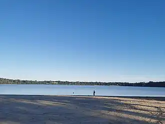 Lake Ronkonkoma is a freshwater lake in Suffolk County, New York. It is a kettle lake formed by retreating glaciers and is the largest freshwater lake on Long Island; it has a circumference of about 2 miles (3.2 km) and is 0.65 miles (1.05 km) across on average.[1] The lake is owned by the Town of Islip under the terms of the Nicolls Patent. The land around it is controlled by three town governments – Smithtown, Islip and Brookhaven. The separation originated because three different Native American communities claimed lands on different shores, and these claims continued when the tribes gave separate deeds to the land under their control. The name Ronkonkoma comes from an Algonquian expression meaning "boundary fishing-lake", also earlier written as Raconkumake and Raconkamuck.[2]