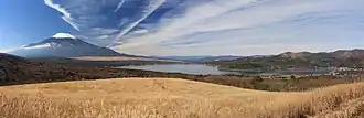 Lake Yamanaka (山中湖, Yamanaka-ko, 'Lake in the Mountains') is located in the village of Yamanakako in Yamanashi Prefecture near Mount Fuji, Japan.