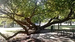 Tietze Park, a 9 acres (3.6 ha) public park owned and operated by the city of Dallas, is located on the western edge of Lakewood Heights on Skillman Avenue between Llano and Vanderbilt Streets. The park was acquired in 1924 by the City of Dallas. It is named after W.R. Tietze, who was Dallas' Superintendent of Parks from 1896-1933. The park contains a sandstone picnic pavilion dating from 1934, a community swimming pool, lighted baseball field, tennis court, basketball court, serpentine walking/jogging paths, other recreation and picnic areas,[22] and more than 75 red oak, live oak, and cedar trees, and a few “kneeling” bois d'arc trees, which are said to predate the park by 50 years or more.[23] The Friends of Tietze Park Foundation is a registered nonprofit organization whose mission is the improvement, preservation and continued beautification of Tietze Park.[24] In 2009, Preservation Dallas[25] recognized the Friends of Tietze Park Foundation with a preservation achievement medal for the Best Rehabilitation of a Historic Landscape or Park.[26]