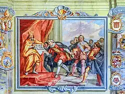 Emperor Maximilian presents the city of Klagenfurt to the Landstände. Fresco by JF Fromiller, Great Hall of Coats of Arms