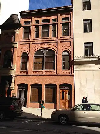 The Lansing Women's Club was founded in 1874 to provide educational and cultural opportunities to local women. The club rented space in various buildings, then in 1889 commissioned local architect James Appleyard to design a new structure. The original building was constructed in 1889-1890 and contained two stories: the upper for club rooms and the lower rental office space. In 1912, the club had a third story constructed, moving their spaces to the new floor and renting out the second as office space. The Lansing Woman's Club used the space until 1949, and in 1952 purchased a new building at 624 West Ottawa Street. The club maintained ownership of the original building until 1972. The building was extensively rehabilitated in 1980.[2]