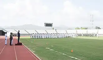 The Larry Gomes Stadium, located in Malabar, Arima, Trinidad and Tobago, is named for West Indies cricketer Larry Gomes. The stadium was constructed for the 2001 U-17 World Cup which was hosted by Trinidad and Tobago. It also hosted games from the 2010 FIFA U-17 Women's World Cup.
