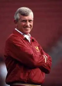 Smith finished with a 44–25–3 record at USC, 17–17–2 in his final three seasons.[8] During his tenure he coached 13 All-American first teamers, including Heisman Trophy runner-up Rodney Peete, Thorpe Award-winning safety Mark Carrier, linebacker Junior Seau, wide receiver Curtis Conway and defensive tackle Tim Ryan. In all, 33 USC players under Smith were selected in the NFL Draft, including six in the first round.[2]