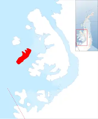 Latady Island is a low ice-covered island off Antarctica, about 35 nmi (65 km) long and 10 nmi (20 km) wide, lying 45 nmi (85 km) south of Charcot Island and west of Alexander Island. An ice-covered feature in this approximate position was seen from the air and described by Sir Hubert Wilkins in 1929, but not recognized as an island or separately mapped. Latady Island was first photographed from the air by the Ronne Antarctic Research Expedition (RARE), 1947–1948, and mapped from these photos by D. Searle of the Falkland Islands Dependencies Survey in 1960. it was named by the UK Antarctic Place-Names Committee for William R. Latady, an aerial photographer and navigator on the RARE flight.[1]