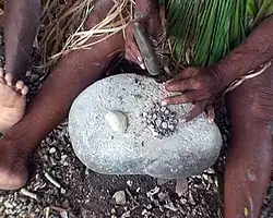Four different types of shell are used in making shell money, A red lipped rock oyster called Romu (chama pacifica), white shell known as Kee (Beguina semi-orbiculata), black horse mussel shells called Kurila (Atrina vexillum) and thick white disks from a rigid cockle known as Kakadu (Anadara granosa)[19]