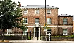 Notable buildings on the south side of the road include the Rook and Gaskill, built as a pub about 1840; 14-18 Lawrence Street, an early 19th-century terrace; Ellen Wilson Cottages, former almshouses; St Lawrence's Church; the former St Joseph's Convent, designed by George Goldie in 1870; the former Sisters of Mercy Convent; a community of Corpus Christi Carmelites; and the early 19th-century 102-104 Lawrence Street. On the north side are the Rose and Crown, built as two cottages in the early 18th-century; 17, 21-23 and 25-27 Lawrence Street, all built in the late 18th-century; Tuke House, built for Samuel Tuke in the late 18th-century; 45-59 Lawrence Street, a terrace built in about 1835; the early 19th-century 61 Lawrence Street; and 81-91 and 93 Lawrence Street, built about 1830.[4][5][6][7]