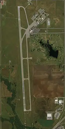 The airport covers 1,300 acres (526 ha) at an elevation of 1,110 feet (338 m). Its single runway, 17/35, is 8,599 by 150 feet (2,621 x 46 m) concrete.[1]