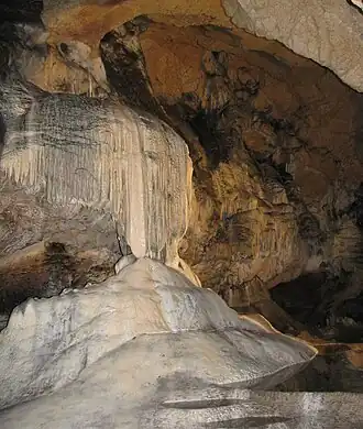 The Lazareva Pećina, which translates Lazar's Cave, is the longest explored cave in Serbia.[1] Located in Bor municipality, near Zlot, the cave is also sometimes referred to as Zlotska Cave.[2] According to 2012's Recent Landform Evolution: The Carpatho-Balkan-Dinaric Region, the cave is 9,407 metres (5.845 mi) long.[1] The cave is situated near the entrance of the deep canyon carved into the mountains by the river Zlotska.[3]