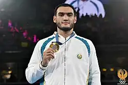 Lazizbek Mullojonov (born 13 May 1999)[1] is an Uzbek professional boxer. He won a gold medal at the 2022 Asian Championships as a super-heavyweight. He became Olympic Champion in the heavyweight event at the 2024 Summer Olympics.