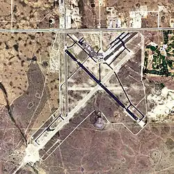 Me-Tex Airport opened on July 23, 1937, where the Hobbs golf course is now, next to Lea County Regional Airport.[6] The Me-Tex Supply Company had leased land from the state and built oiled runways and a hangar at Me-Tex.[7]