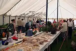 Lealholm Village Show and sports day is held by the Lealholm Farm Produce and Horticultural Society on the first Saturday in September.[34] The show, known as the Lealholm Agricultural Show, takes place on the village sports field, usually reserved for cricket during the summer months, and football during winter.[35] It held its 87th show in 2007. There was no show in 1970, and in 2001 the organisers decided it would be inappropriate to hold the show due to the Foot and mouth outbreak. In 2008, the show was cancelled for the first time in its history. Due to bad weather, the cricket pitch became waterlogged after weeks of heavy rain and a torrential downpour in the days leading up to the show.[36] The show has over 200 exhibitions of crafts, wine making, fruit, vegetables and farm produce for competition including categories for children.[37] Children's sports and a fancy dress parade are held on the cricket pitch and are always well supported, although there usually has to be a lot of persuasion for entries into the adult's "Twice round the field" competition. Side stalls include "Bowl for a Goose", where competitors attempt to bowl five balls through holes in a frame at the end of a short but bumpy pitch. The winner can take home a live goose, have it delivered for Christmas or receive a cash prize.[35]