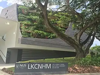 The Lee Kong Chian Natural History Museum (LKCNHM; Malay: Muzium Sejarah Alamiah Lee Kong Chian,[1] Chinese: 李光前自然历史博物馆; pinyin: Lǐguāngqián zìrán lìshǐ bówùguǎn) is a museum of natural history at the Kent Ridge Campus of the National University of Singapore. It is named after Lee Kong Chian, a prominent Chinese businessman and philanthropist active in Malaya and Singapore between the 1930s and the 1960s. It was officially opened on 18 April 2015.[2]