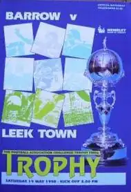 Leek Town reached the final of the FA Trophy in 1990, having progressed all the way from the first qualifying round, but lost in the final at Wembley Stadium 3–0 to Barrow.