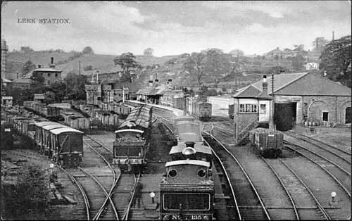 Leek railway station served the town of Leek, Staffordshire. It was opened by the North Staffordshire Railway in 1849.[3] Passenger services to Uttoxeter were withdrawn in 1965, with complete closure following in 1970. For a short time in 1961–62, special football excursions (the Stanley Matthews Express) were arranged to Stoke following the return of Stanley Matthews to Stoke City FC.