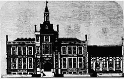 In 1852 Stanhope acquired a plot of land formerly belonging to the kitchen garden of Kensington Palace: he constructed Harrington House (or No. 13 Kensington Palace Gardens), which was built in his favourite gothic style, at the cost of £15,000.[15] Harrington House was owned by the family until the First World War; Since 1930 Harrington House has been home to the Russian Embassy.[15] The exterior of the house was designed by Decimus Burton, following plans sketched by the Earl.[16] Works were carried under the supervision of Charles James Richardson, who was the surveyor to the Earl's extensive South Kensington estate.[16] Details and the final plans are thought to have been left to Richardson; he did, however, acknowledge the "great measure" the Earl was involved in the design.[16] The house's unorthodox architecture was widely criticised, including by Richardson; Lord Harrington, however, thought it to be "a house without a fault".[16]