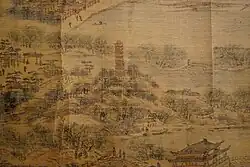 The interior of the fourth floor of Leifeng Pagoda features a display of Oushe sculptures depicting the specific locations of the ten scenic spots of West Lake, collectively known as the "New Face of West Lake".[24]
