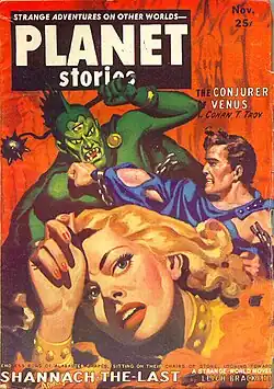 Brackett's novella "Shannach - The Last" took the cover of the December 1952 issue of Planet Stories.