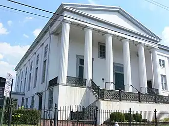 Leigh Street Baptist Church, also known as Church Hill Presbyterian Church, is a historic Southern Baptist church in Church Hill North Historic District which is in Richmond, Virginia. It was designed by architect Samuel Sloan and built between 1854 and 1857. It is a three-story, Greek Revival style stuccoed brick structure. It features a Grecian Doric, pedimented portico with six fluted columns and a full entablature which continues around the side of the church. Additions were made in 1911, 1917, and 1930.[3]