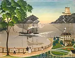 Bauman is known to have come from Verona, New Jersey, near Newark, but a search of genealogical and other records has as yet provided no further information about her life and career.[1] It is possible that she worked for Currier and Ives at some point.[2] Two oil-on-canvas river landscapes in the Edgar William and Bernice Chrysler Garbisch Collection in the National Gallery of Art are currently her only known paintings. One is titled Geese in Flight, and the other U.S. Mail Boat; internal evidence dates the two paintings to the 1850s, and suggests that they were inspired by views around the New York City area.[1]