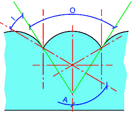 The diagram at right shows in green the most extreme ray within the lenticular lens that will be refracted correctly by the lens. This ray leaves one edge of an image strip (at the lower right) and exits through the opposite edge of the corresponding lenticule.