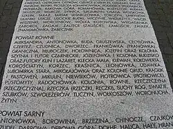 Leonówka on the plaque of the Monument to the Volhynian Massacre in Warsaw
