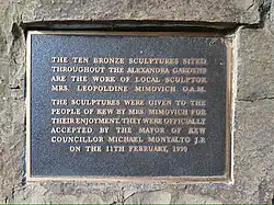 - ^ a b c d Holsworth, Mark (2020-11-22). "Mimovich's sculptures in Kew". Black Mark. Archived from the original on 2024-03-12. Retrieved 2024-03-12.