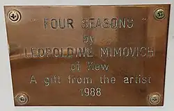 Mimovich also donated sculptures to the Kew Library adjacent to the Alexandra Gardens, both works in the series 'Seasons'.