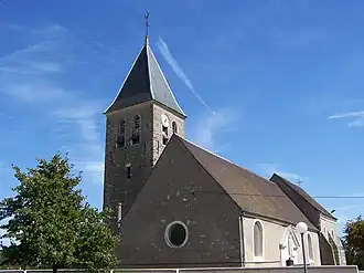 It is the oldest building in the commune. Its nave dates from the 11th century, the choir and the sanctuary from the 14th and 15th centuries. Like many small village churches, it does not have a cross-shaped plan. It has several Romanesque elements such as small round bay windows and a narrow, low limestone nave, as well as a vault with arches, but it has only one side aisle, whereas churches usually have a second one. Sculpted in the 11th century, a headstone supports the tabernacle. The church also has Gothic elements such as : the vault of the choir, a ribbed vault, as well as a bay windows with three lancet arches), dating from the 14th-15th centuries. It is thus a mixt of Romanesque and Gothic styles. There is a statue of the Virgin and Child from the 15th century, registered in the departmental inventory of historical monuments. The original bell tower was destroyed during the Hundred Years' War and was later rebuilt. The church was dedicated to Saint Martin during the reign of Henri III.In the 16th century, a wooden cartouche carved with the Roman numeral "1500" ("MC") was placed above the door of the sacristy. In the same century or the following one, frescoes were painted on the pillars of the nave. A baptismal font made of pink marble with a copper cover dating from the 17th and 18th centuries was also installed. All these elements are still visible today.