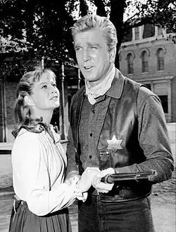 After leaving the studios, Nielsen landed the lead role in the Disney miniseries The Swamp Fox, as American Revolutionary War hero Francis Marion.[43] In a 1988 interview, he reflected on the series: "That was a great experience, because the Disney people didn't do their shows like everyone else, knocking out an episode a week. ... We only had to do an episode a month, and the budgets were extremely high for TV at that time. We had location shooting rather than cheap studio backdrops, and very authentic costumes."[44] Eight episodes were produced and aired between 1959 and 1961.[43]