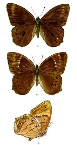 - ^ Weymer, G. 1910-1911. 4. Familie: Satyridae. In: Seitz, A. (Ed.), Die Gross-Schmetterlinge der Erde. Stuttgart, A. Kernen. 5: 185-225.