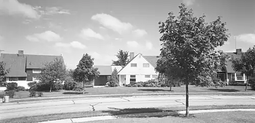 William earned a reputation as the person to see for high-end, custom homes on Long Island's North Shore, called the Gold Coast. Prior to World War II, Levitt & Sons built mostly upscale housing on and around Long Island, New York. During the 1930s, they built the North Strathmore community at Manhasset, New York, on the former Onderdonk farm.[6] The North Strathmore homes sold for $9,100 to $18,500. The Levitts built another 1,200 homes in Manhasset, Great Neck, and Westchester County. Radio stars, prominent journalists, surgeons, business people, and lawyers bought the upscale Levitt houses.[7] Levitt & Sons also built Strathmore at Roslyn a few years later, in the late 1940s.[8]