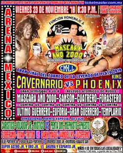 13. ^ "Noche redonda para Máscara Año 2000 en su aniversario 40 en el CMLL" (in Spanish). November 24, 2018. Retrieved November 18, 2019.