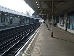 Eastbound platform looking west, with the curve towards the tunnel portal in the background