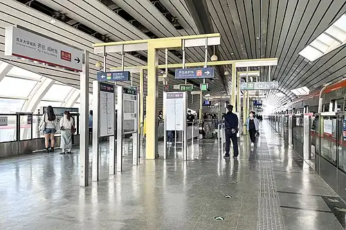 Liangxiang Univ. Town West station[1] (simplified Chinese: 良乡大学城西站; traditional Chinese: 良鄉大學城西站; pinyin: Liángxiāng Dàxuéchéng Xī zhàn) is a station on Fangshan Line of the Beijing Subway.[3]