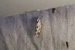 The wingspan is about 20 mm. The forewings are white heavily sprinkled with fuscous and with fuscous markings. There is an oblique, slightly curved line from beneath the costa near the base to near the base of the dorsum. There is a small dorsal suffusion, from the middle of which a stout inwardly oblique line runs halfway across the disc. An ill-defined fascia is found from the midcosta to the tornus and there is an erect line from the tornus joining an elongate subapical costal spot, the posterior edge of which is again connected with the tornus. There is also a broad submarginal line from the apex not reaching the tornus. The hindwings are whitish with the extreme apex slightly suffused with grey.[2]