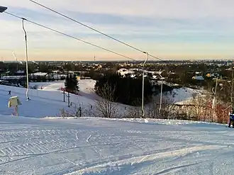 Liepkalnis Winter Sports Centre is an alpine skiing area in Vilnius, Lithuania. It has 10 lifts and 9 groomed ski runs.[1] All the pistes are lit and equipped with artificial snow making equipment. The centre is based on the highest point in Vilnius, Laimio kalnas, with a maximum altitude of 235.12 metres (771.4 ft) above sea level.[2] The maximum altitude difference on the hill is 65 metres (213 ft).[3]