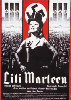 Lili Marleen is a 1981 West German drama film directed by Rainer Werner Fassbinder that stars Hanna Schygulla, Giancarlo Giannini, and Mel Ferrer.[1] Set in the time of the Third Reich, the film recounts the love affair between a German singer who becomes the darling of the nation, based on Lale Andersen, and a Swiss conductor, based on Rolf Liebermann, who is active in saving his fellow Jews. Though the screenplay uses the autobiographical novel Der Himmel hat viele Farben (The Heavens Have Many Colors) by Lale Andersen, her last husband, Arthur Beul, said the film bears little relation to her real life.