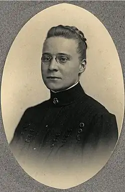 Formidable in her starched shirt-waists and gold-rimmed glasses, intensity of purpose, and ceaseless application to hard work. Even one of her hobbies, mountain climbing, was strenuous.[9]