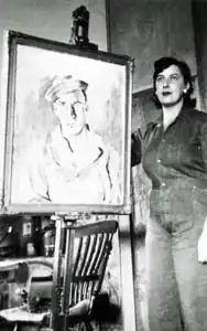 Nevertheless, as Forwood notes (2001), her portraits 'best reveal her contribution to Australian art’, moreover, 'her seventy-three portraits of friends engaged in the world of art and letters form a pictorial biography of Bryans herself’.[9] Her well-known, jaunty portrait of Australian writer Jean May Campbell,[10] The Babe is Wise, (named after Campbell's novel of the year before) was painted in 1940. It is held in the National Gallery of Victoria collection.