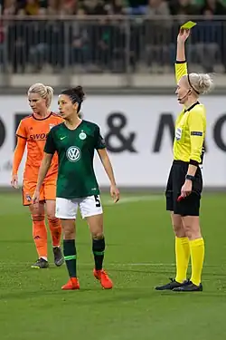 Lina Lehtovaara (née Långbacka, born 23 June 1981) is a Finnish football referee who has been a FIFA referee since 2009.[1] Football Association of Finland has awarded Lehtovaara as the Referee of the Year in 2015–2016 and 2018–2021.