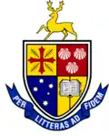 The design of the coat-of-arms embodies, in heraldic terms, both the origins and the aims of the college. The shield is surmounted by a gold stag, taken from the Arms of Lincoln College, Oxford. Its quarters comprise: