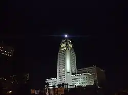 The Lindbergh Beacon, an aircraft beacon atop the Los Angeles City Hall, operated nightly from April 26, 1928, until just after the attack on Pearl Harbor. It was restored to its original condition in 2001, and Los Angeles magazine described it as "a tiara of light atop our beautifully restored Los Angeles City Hall."[1] City officials now occasionally put the beacon into operation for special occasions such as the year-end holidays.