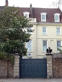 The house was divided into four separate dwellings in 1775. Today, it occupies nos. 96 to 101 of Cheyne Walk, covering a number of separate frontages and outbuildings.[1] Previous residents have included the historical painter John Martin, in one of the outbuildings at 4 Lindsey Row from 1849 to 1853 and James McNeill Whistler between 1866 and 1878 at 2 Lindsey Row (now 96 Cheyne Walk).[6][7] In 1808, engineer Marc Brunel lived in the middle section of the house (now no. 98), and his son Isambard Kingdom Brunel grew up here.[5] These residencies are commemorated by Blue plaques on the walls of the house.[1]